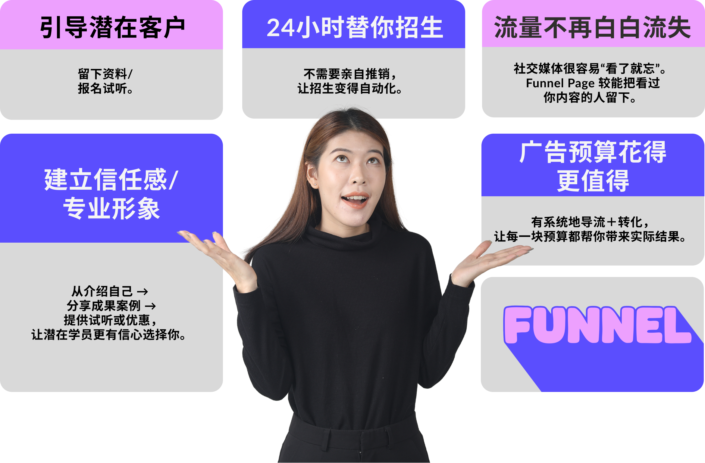 但漏斗页面才是真正引导潜在学员,